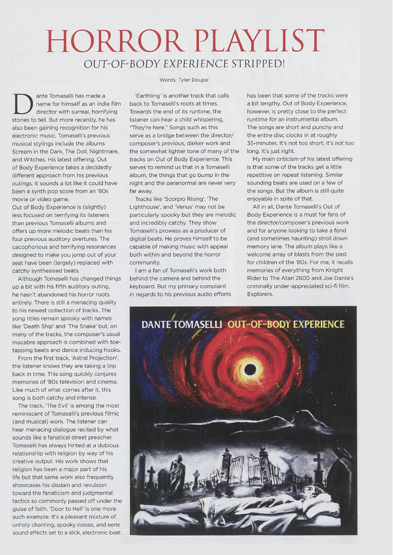 “Pulsing John Carpenter-esque keyboard work...Dante Tomaselli releases his fourth album of spooky, soundtrack inspired instrumental music.”Rock! Shock! Pop!